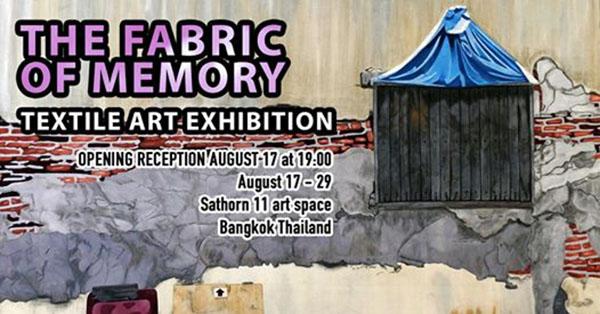 นิทรรศการ "The Fabric of Memory" ผลงานโดย Janice Stevens, ศศิวิมล สุจิต (Sasiwimol Sujit), สุนิษา อัศวินรุ่งโรจน์ (Sunisa Assawinrungroj), พัชริสา สุวรรณ์รัตน์ (Patcharisa Suwannarat), นิลยา บรรดาศักดิ์ (Nilraya Bundasak) และ ธิติพรหม อ่อนเปี่ยม (Thitiprom Onpiam) จัดแสดงระหว่างวันที่ 17 - 29 สิงหาคม 2562 และจะมีพิธีเปิดในวันที่ 17 สิงหาคม 2562 ณ สาทร 11 อาร์ต สเปซ : Sathorn 11 Art Space